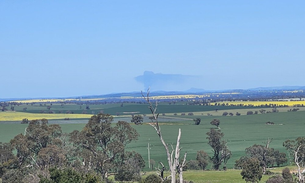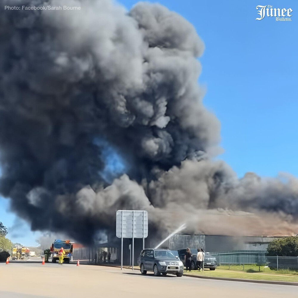 A towering column of thick, black smoke rose into the sky — a plume so vast it could be seen from more than 60 kilometres away in Junee.