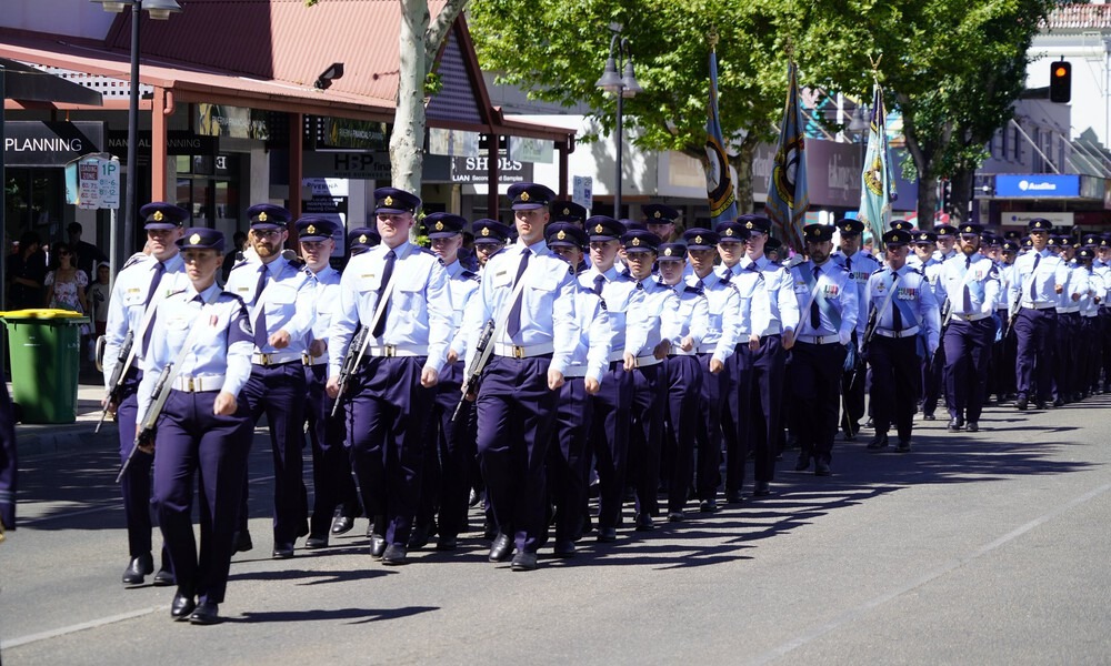 With swords drawn, firearms carried and drums beating, more than 500 uniformed personnel from the Royal Australian Air Force, Australian Army and Royal Australian Navy paraded through the CBD in a striking display of unity, precision and pride.