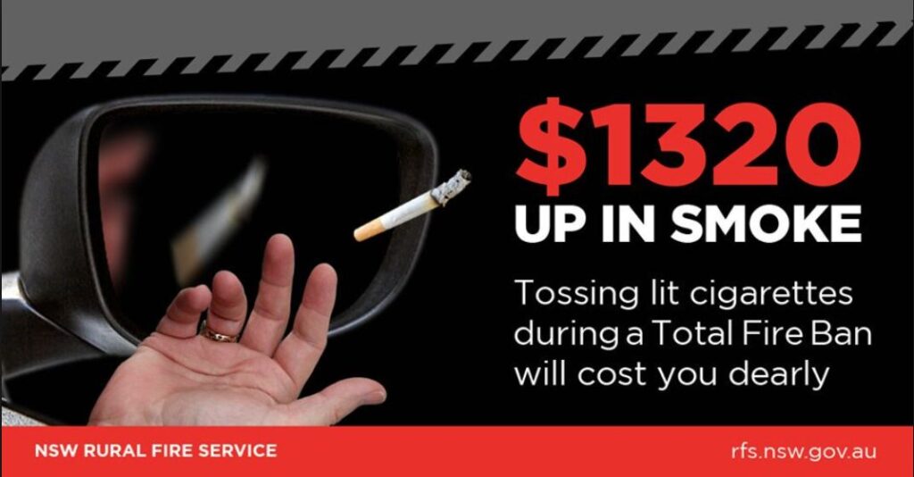 Under these conditions, the RFS warns fires can start easily, spready rapidly, be difficult to control and threaten lives, property, crops and stock.