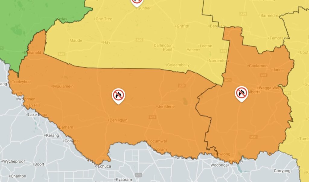 As a result, an extreme fire danger rating is in place for the Eastern and Southern Riverina fire districts, including Junee, Wagga, Coolamon, Lockhart, Deniliquin and Albury.