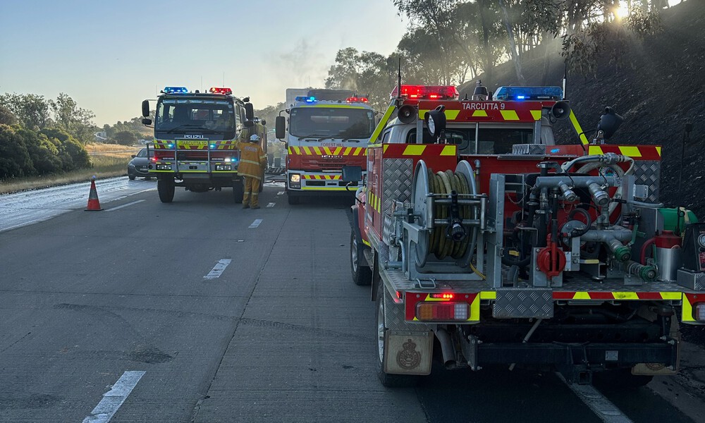 Not long after, crews were dispatched to the Hume Highway at Tarcutta, where a B-double truck fire had spread into surrounding grassland.