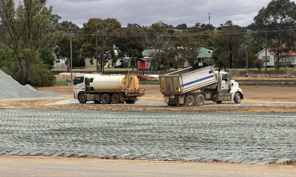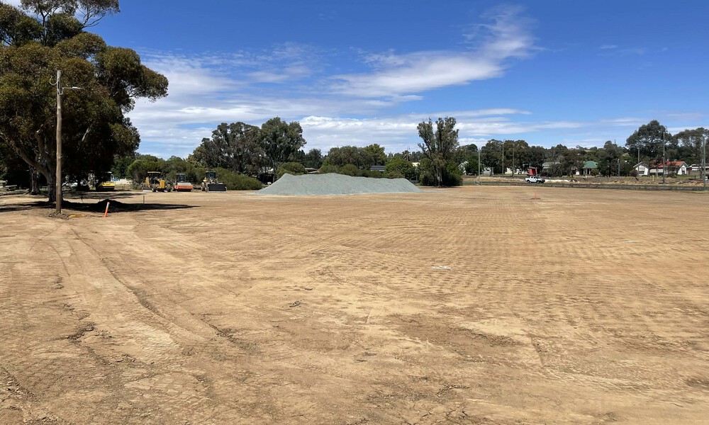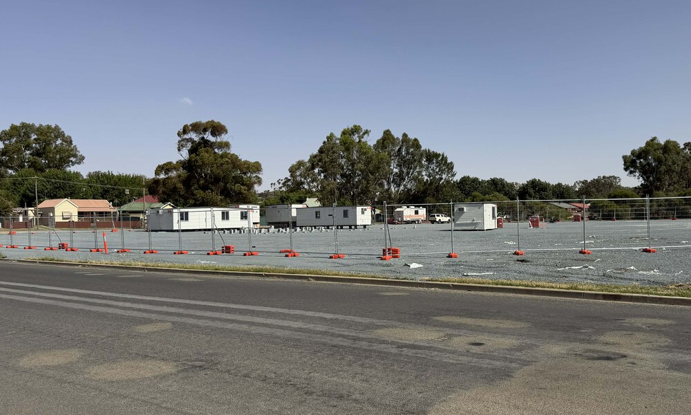Wrights Oval has been transformed into a major ancillary compound to support works at the Kemp Street bridge site | Photo: © The Junee Bulletin