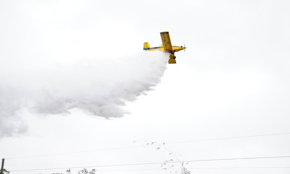 A waterbombing air tractor from Griffith was called in to help contain the blaze | Photo: Supplied/Shen Billingham