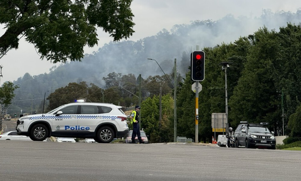 A Watch and Act alert was issued at 5pm, with the NSW Rural Fire Service warning of a “heightened level of threat” as the fire chewed its way up the eastern slope between Captain Cook Drive and Lake Albert Road.