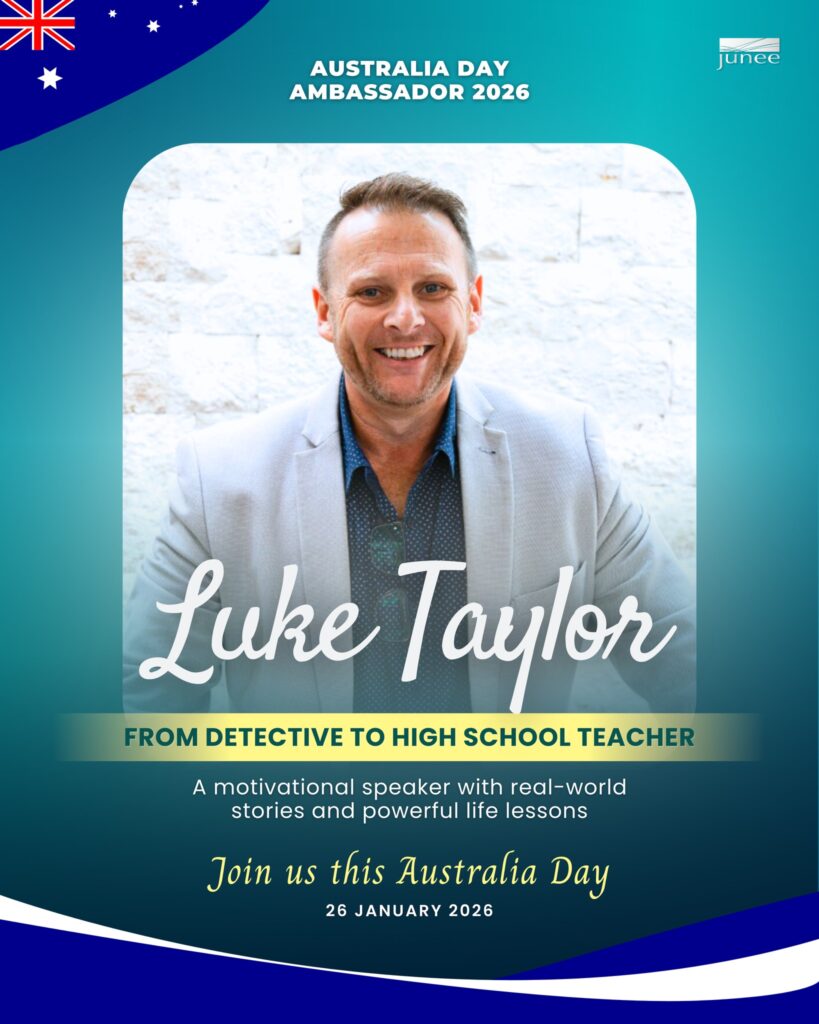 JUNEE will be represented this Australia Day by former NSW Police detective turned educator Luke Taylor, who has been appointed as the town’s official Australia Day Ambassador for 2026.