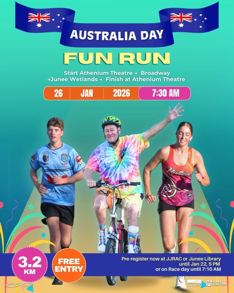 Australia Day 2026 in Junee is shaping up as a celebration of community spirit, local achievement and shared resilience — beginning with the town’s early-morning fun run and ending with families gathering across town to cool off, celebrate and reflect on what makes Junee home.