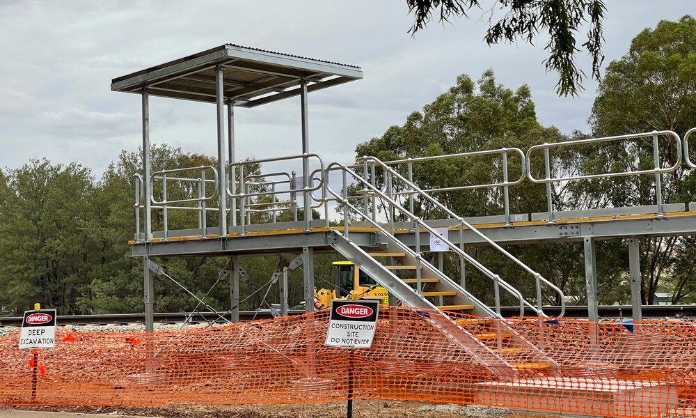 The steel structures — complete with access stairs, safety railings and overhead sheltering — were erected during last weekend’s rail possession, marking one of the most visible signs of progress in the town since demolition of the Kemp Street bridge in September last year.