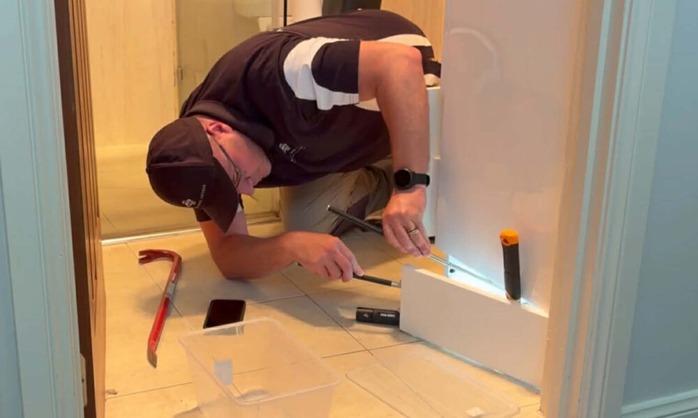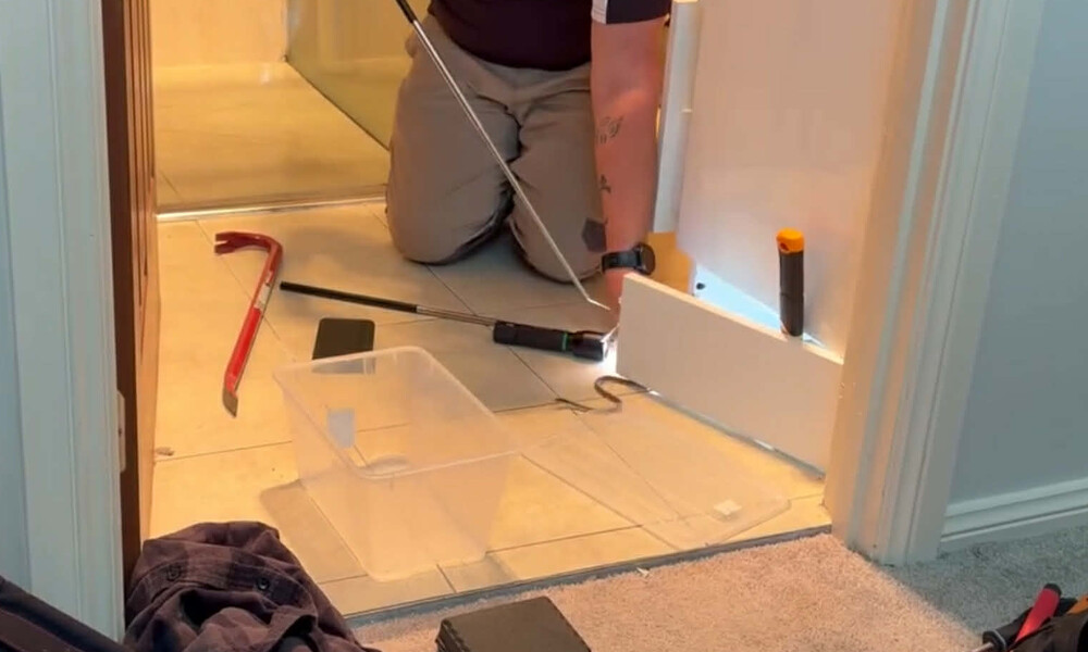 Mr Vivian said he received a frantic call and responded to the home, where the juvenile brown snake was initially found near the door before slipping back underneath the vanity.