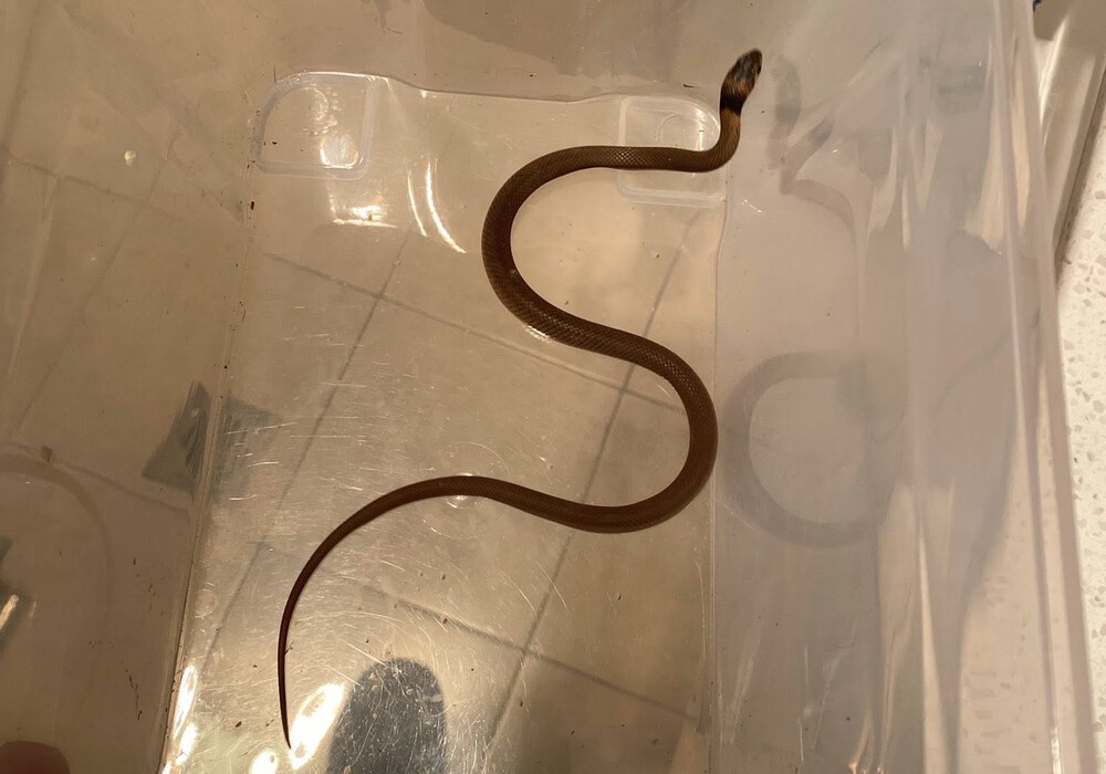 The juvenile eastern brown snake removed from Jacqui’s home | Photo: Supplied